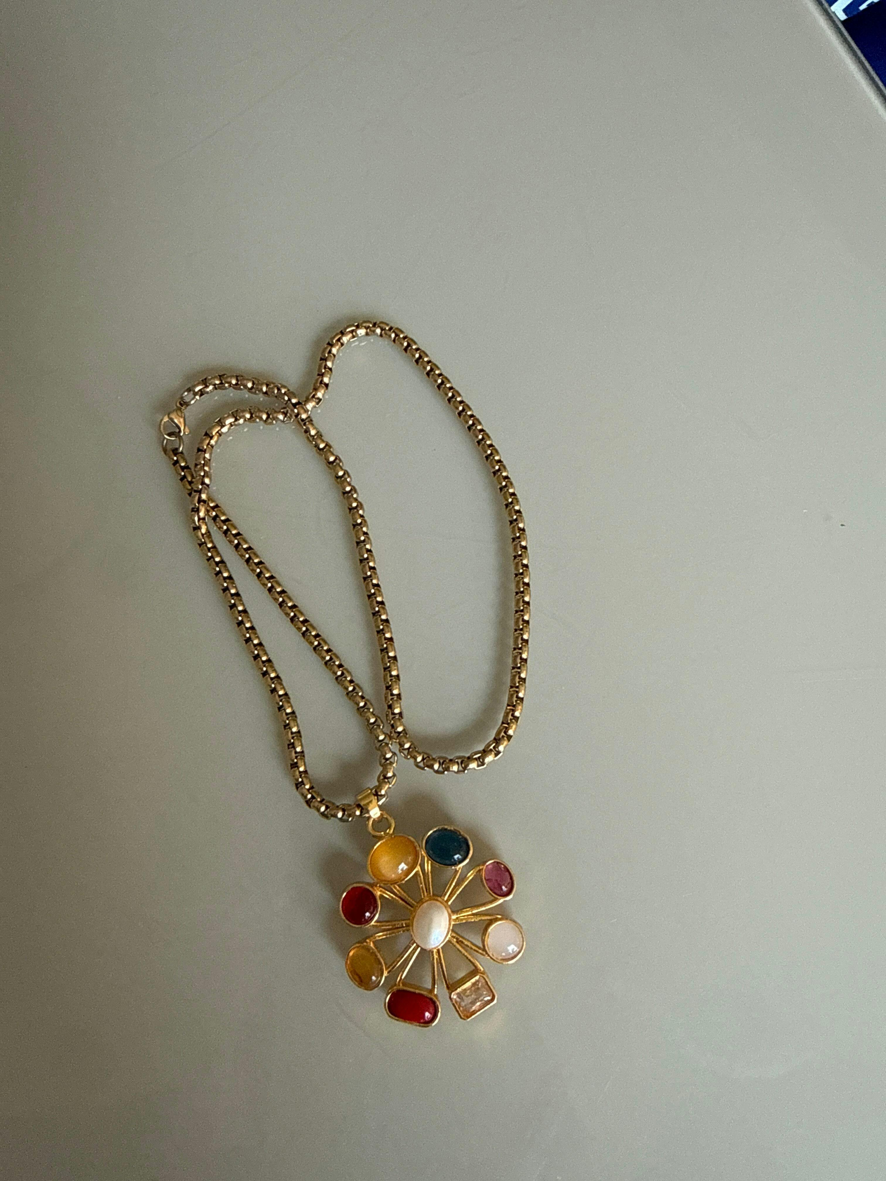 Navratan Locket with Chain (22K Gold Plated) - (Buy 1 Get 1)